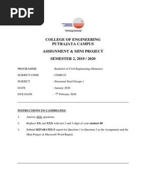Assignment Miniproject Cesb 333 Sem 2 2019 2020 Pdf Pdf Beam Structure Mechanical Engineering